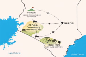 Day Itinerary After an American breakfast, transfer to Nanyuki Airstrip for your flight QP 031 departing at 0915 hrs to arrive at the world-famous Masai Mara Game Reserve via the Great Rift Valley at approximately 1100 hrs. On arrival at the Olare Orok airstrip, transfer to your camp in time for lunch and check-in. In the afternoon, enjoy an enthralling game-viewing drive inside the conservancy. Spotting lions, cheetahs, and other spectacular predators is the highlight of your day. Later return to the Camp for dinner and overnight at Mara Olare Kempinski Luxury Tented Lodge – Inclusive – Standard Tents. Basis Full Board Plus – Dinner, Bed, Breakfast, Lunch, and Activities